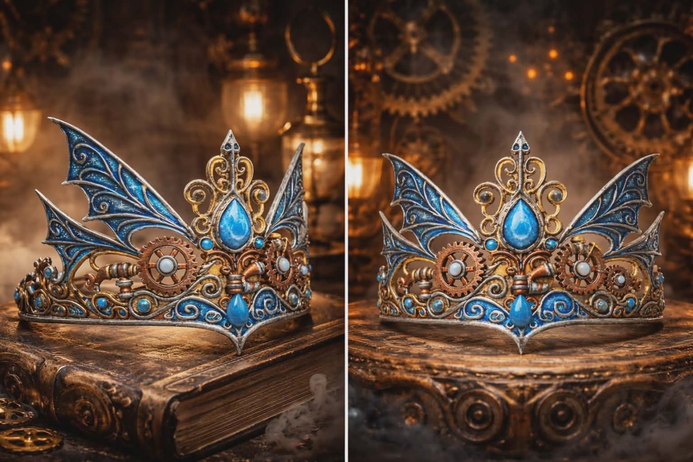 Steam-Punk Krona med blåa älv-vingar